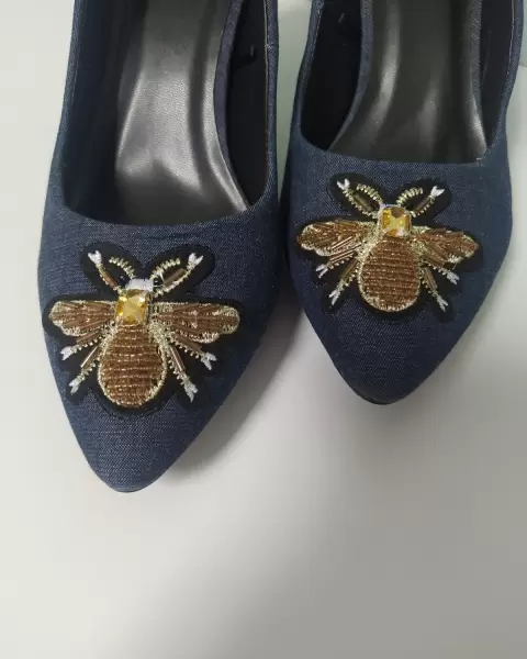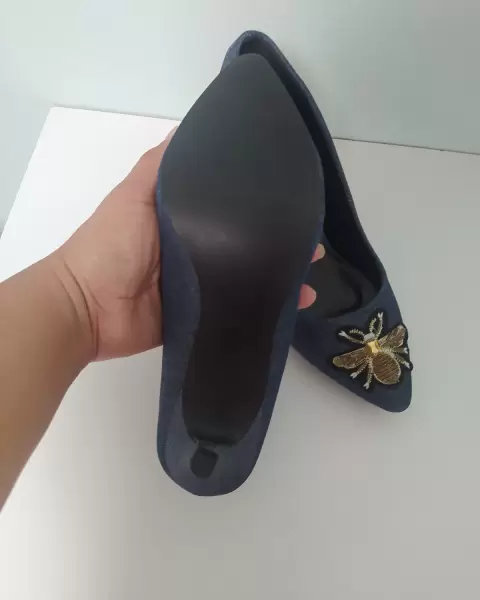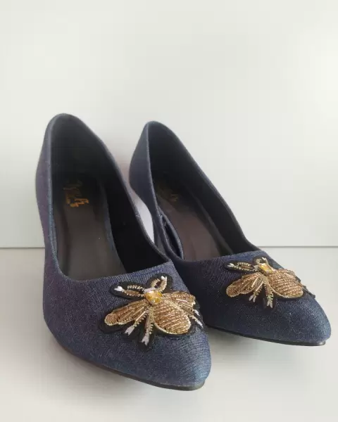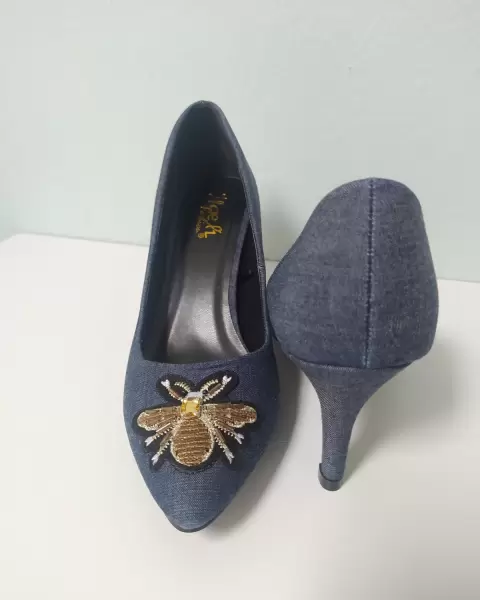 ✨El precio de este par es fijo✨Super lindas zapatillas, la tela es tipo mezclilla.Tacón de 7 cmElemento distintivo en la parte de adelante 😍