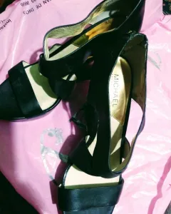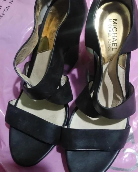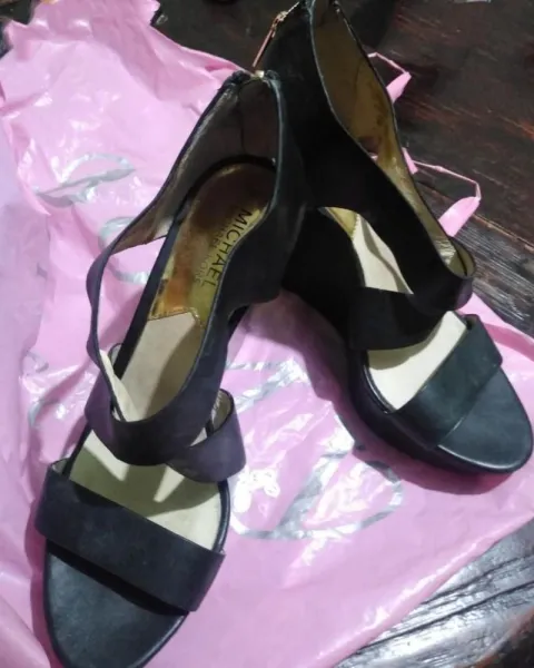 Zapatillas marca Michael Kors,sandalias de cuña de cuero color negro,con cierre atras.Tiene una puesta,vendo por limpieza de closet,tiene una manchita por dentro por estar guardadas.