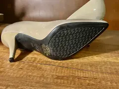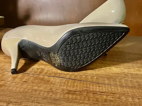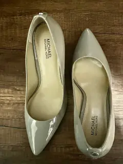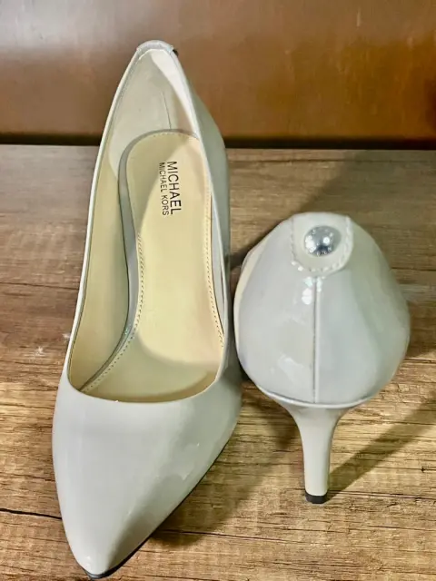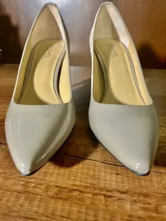Hermosas zapatillas de charol color gris claro, de Michael Kors. Tacón de 7 cm, cómodas y elegantes