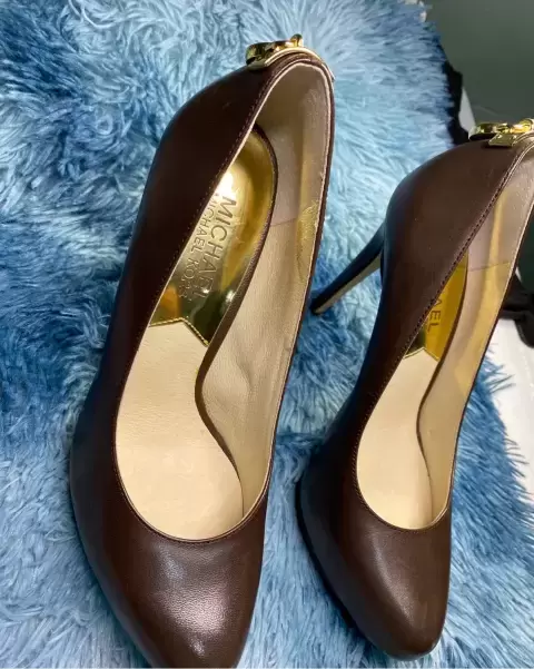 Hermosos Tacones Michael Kors, plataforma de 3 cm, tacón de 12 cm, de piel