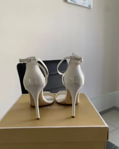 Zapatillas mk originales. El único detalle que tienen es esa pequeña mancha en la parte de atrás, creo es por transferencia de ropa No tienen rallones Están hermosos