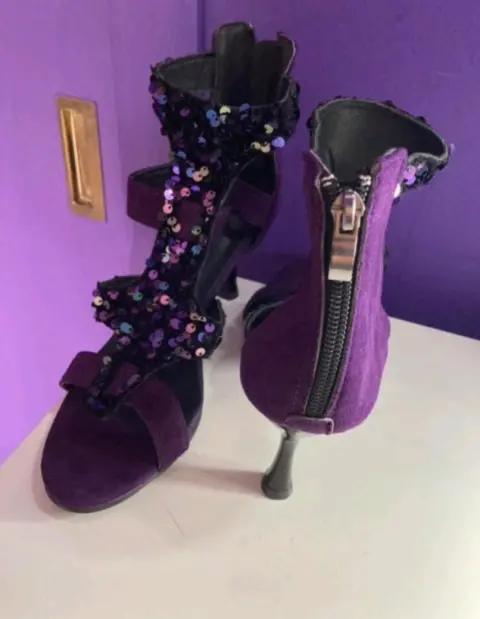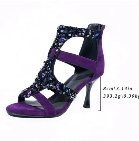Zapatillas moradas de fiesta. Preciosas zapatillas color morado con lentejuelas, Talla 24, con cierre en la parte de atrás, muy cómodas., en perfectas condiciones❣️PRECIO NO NEGOCIABLE, NO ACEPTÓ OFERTAS🚫....... NO BLOQUEES si no estas segura de tu compra.