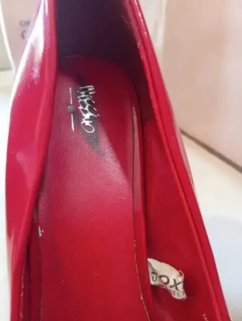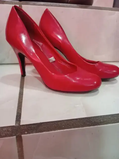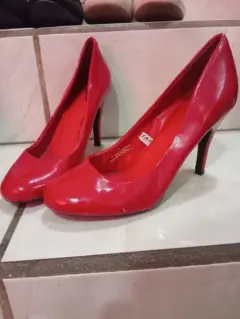 Zspatillas rojas tipo punta redonda de tacón 7, para aun look super casual y femenino... Detalles mínimos de uso...
