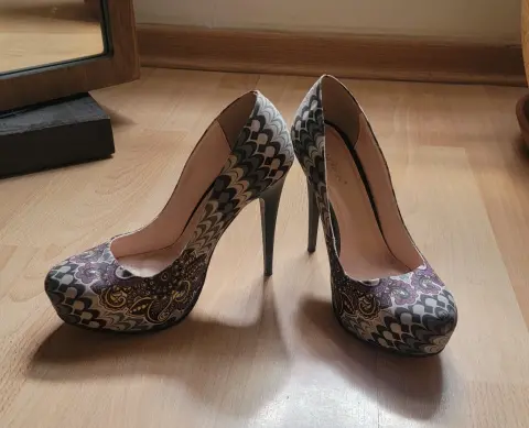 Zapatillas multicolor marca Andrea. Zapatillas en buenas condiciones, marca Andrea del 24.5 son multicolor, predomina gris, contiene también morado, negro y amarillo