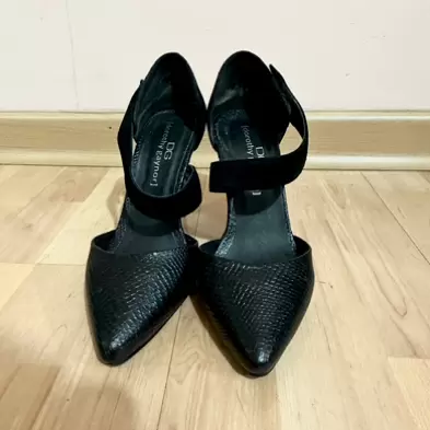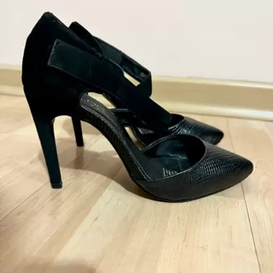 Zapatillas Negras con textura y tira con velcro en color negro, del número MX 3 1/2 USA 6 1/2, súper bonitas y cómodas, muy poco uso, el tacón es de 10 cm