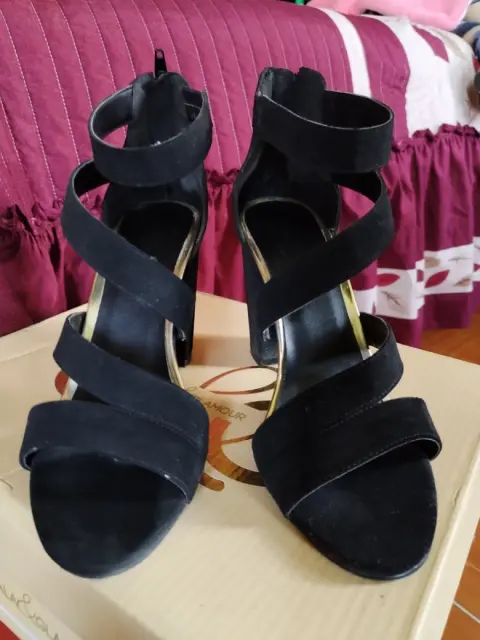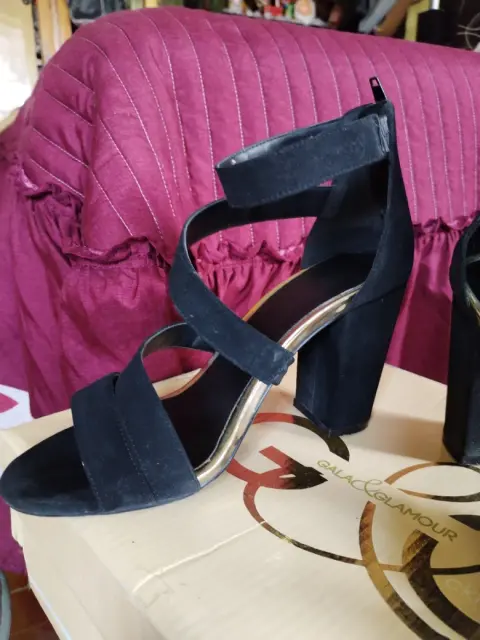 Zapatillas negras de Jenifer López con tacón ancho altura de 9 CM, muy cómodas, elegantes para cualquier ocasión
