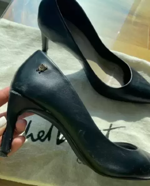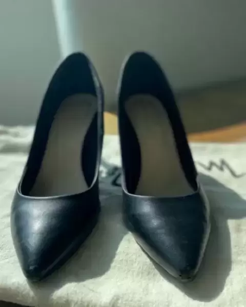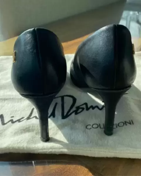 Preciosas zapatillas negras tacón medio marca Michel Domit, ideal para la oficina, cómodas y en excelente estado