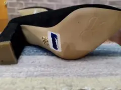Hermoso par de zapatillas en color negro y en tipo terciopelo, talla 4, comodas pero para un pie no muy ancho, 10 cm de alto, solo estan pisadas pero en si nunca se usaron .