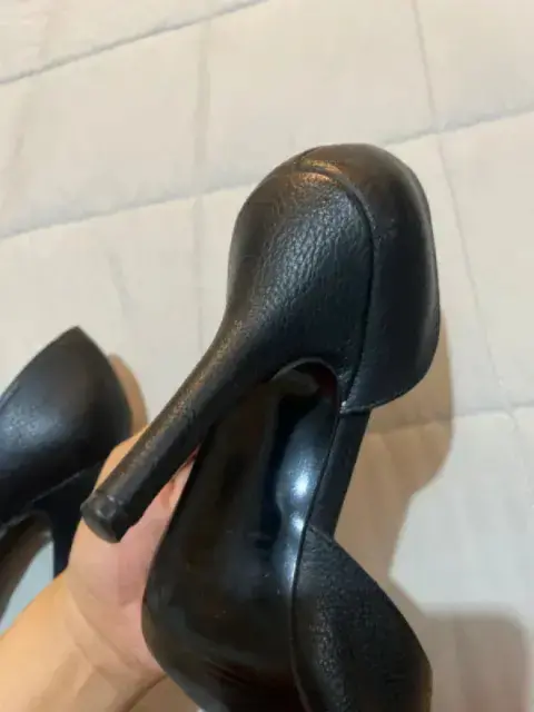 Zapatillas negras con tacón. Hermosas y elegantes zapatillas, de tacón Casi nuevas , uso máximo 3 veces Talla : 22.5 cm Marca: capa de ozono