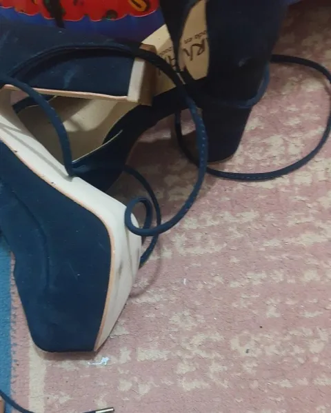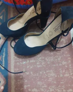 Zapatillas de gamuza color negro , talla 5.5 tacón del 13 , solo se usaron una vez.