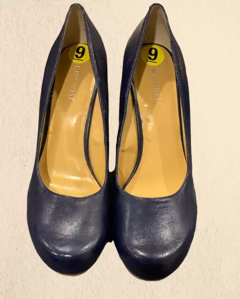 Zapatillas Nine West azul marino. Zapatillas azul marino con tacón puente, de corcho, puestos una vez, la plantilla es muy suave, súper cómodas. Tiene unos detalles en el tacón. Llévatelas con regalo sorpresa ❤️