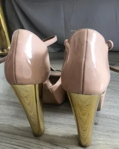 Bonitas zapatillas color maquillaje con plataforma tacón dorado en excelente estado se uso 2 veces