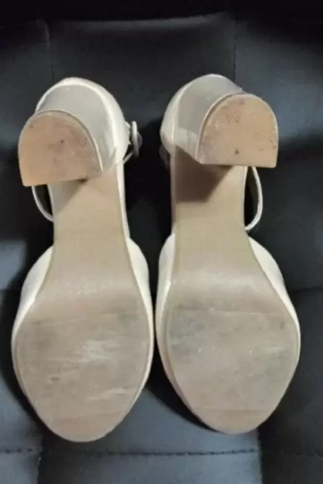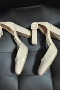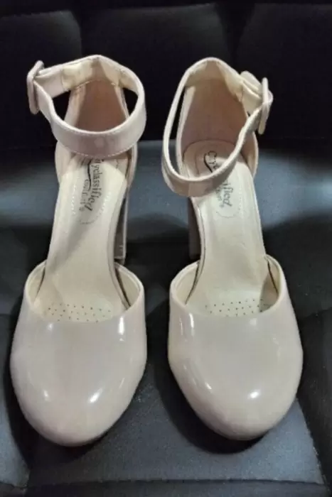 Zapatillas de charol color Nude, con pulsera en tobillo y tacon ancho, #5.5Se usaron un par de veces ligeros detalles de uso revisar ultimas 2 fotos