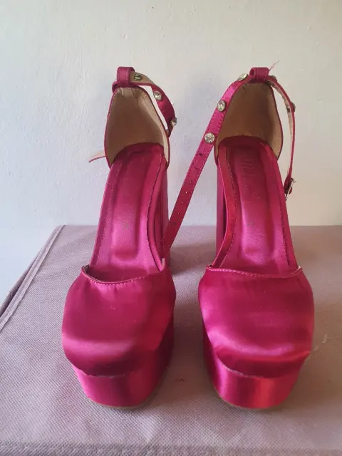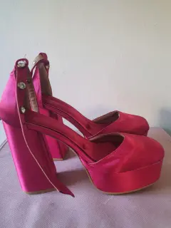 Zapatillas plataforma. Lindas zapatillas de plataforma ,color rosa de satin ,talla 4 y super comodas