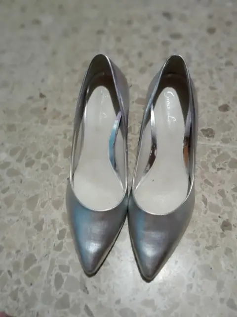 Zapatillas plateadas con tacón 👠 pequeño ideales para una fiesta!! Excelente estado!!