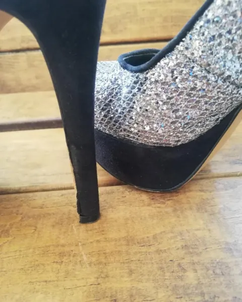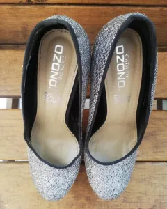 Zapatillas plateadas diamantina. Son del número 23 1/2, tiene pequeño detalle no muy evidente en las ultimas dos fotos.