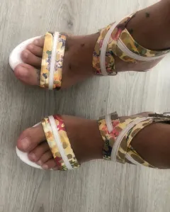 Zapatillas puente. Plataformas nuevas cintas floreadas bonitas