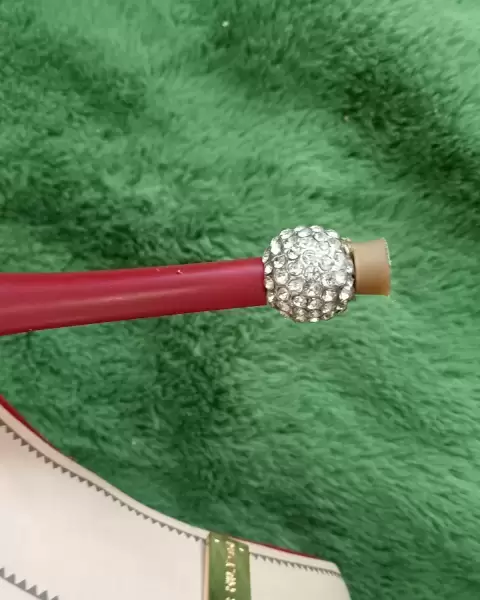 Zapatillas altas con tacón de 10 cm. Son de gamuza con un detalle de tela al frente. En los tacones traen un detalle de pedrería muy coqueto y lindo. Quien las compro nuevas les mandó a poner algo para poder ponerles pulserita, pero ya no lo usó. Solo se usaron una vez.