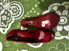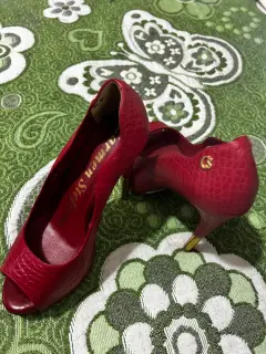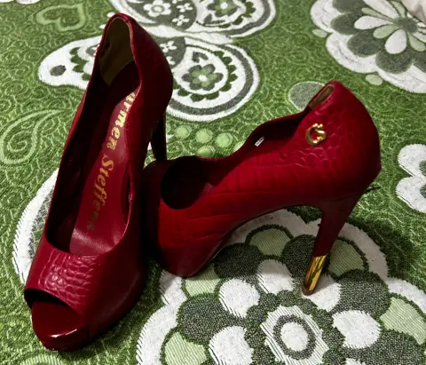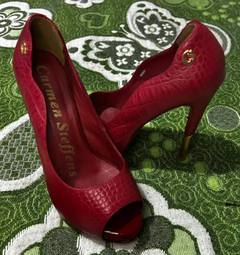 Zapatillas rojas Carmen Steffens. Zapatillas de marca brasileña (Carmen Steffens) alto 12 cm En extraordinario estado Talla 3Con detalle dorado en el tacón que las hace ver muy elegantes