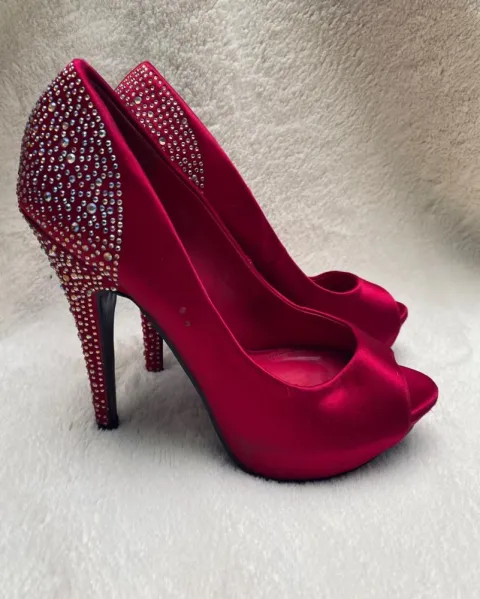 Zapatillas rojas como quemado o vino, no sé exactamente tienen un de rojo hermoso.Me las puse 3 veces , están en buen estado como se ven en la foto, revísale puntas, tacón, suela, por dentro, me gusta ser sincera... Tacón de 14 cm.