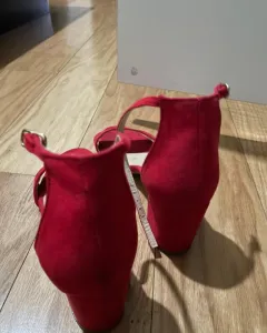Zapatillas rojas de la marca shasa talla 25, envío inmediato una vez hecho el pago, la tela es tipo gamuza.