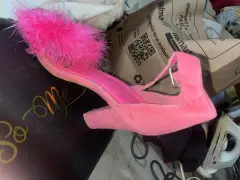 Zapatillas rosas, tipo ante abiertas de pulsera, número 7 mexicano, puestas dos veces.