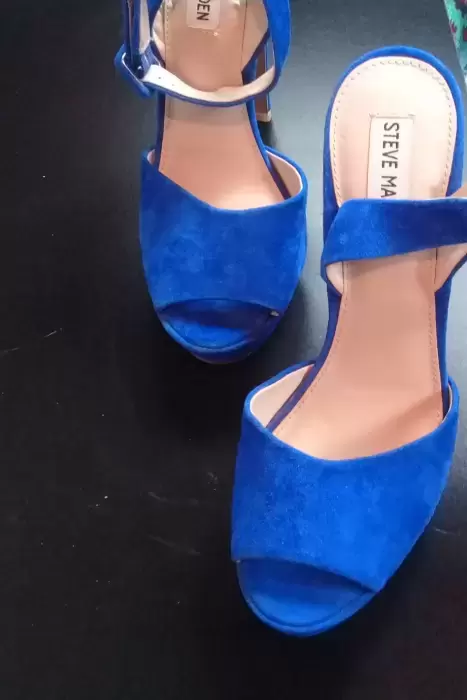 Zapatillas Steve Madden. Hermosas zapatillas color azul eléctrico, solo se usaron 1 vez, en perfecto estado.Talla 24.5 tacon aprox 11cm