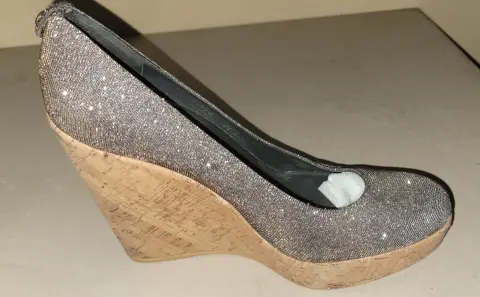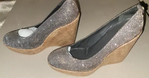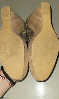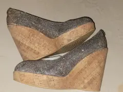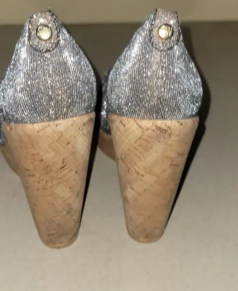 Zapatillas wedges plataforma marca de diseñador Stuart Weitzman tela gris tornasol detalle de marca boton DoradoSize 9 ame / 6 mex, detalle imperceptibles.no caja.