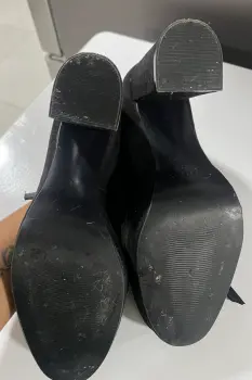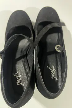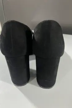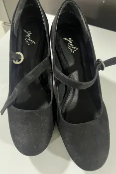 Elegantes zapatillas de tacón cuadrado de 7 cm en terciopelo negro, marca Yaeli. Usadas en muy buen estado, perfectas para cualquier ocasión. Cómodas y sofisticadas, ideales para añadir un toque chic a tu atuendo. ¡No te las pierdas!