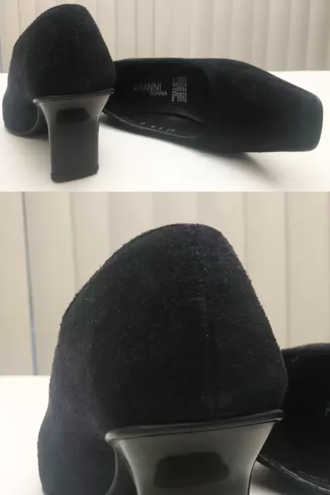 Zapatillas tipo ante negro. Zapatillas tipo ante color negro. Corte, forro y suela sintéticos. HECHO EN MÉXICO. Alto de tacón: 5 cms