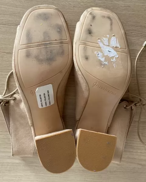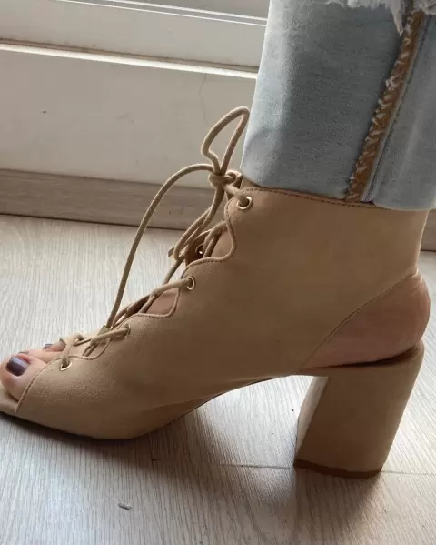 Zapatillas beige con cordones tipo corsete, vienen amplios, ideales para pie ancho, talla 38 EUR, puestos una vez.
