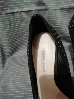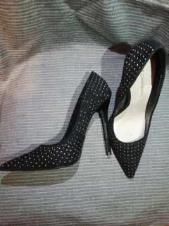 Zapatillas (usadas 2 veces) de la marca Zara Woman. Talla 38 (en Mx 4.), color negras de ante con puntitos metálicos en color plata, tacón de 10c.m.