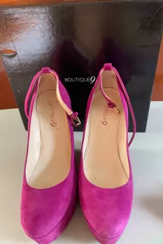 Zapatos super cómodos y chuleadosPuestos una vez, casi nuevosMarca Boutique 9 de Nine WestColor FucsiaTalla 5.5 Usa 8.5Tacón altura 13 cmPlataforma altura 5 cmComodidad 10 de 10