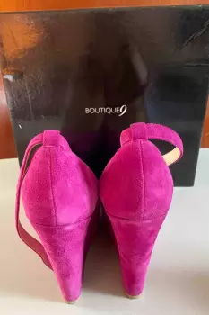 Zapatillas Wedge Fucsia SUPER LINDOS. Zapatos super cómodos y chuleadosPuestos una vez, casi nuevosMarca Boutique 9 de Nine WestColor FucsiaTalla 5.5 Usa 8.5Tacón altura 13 cmPlataforma altura 5 cmComodidad 10 de 10
