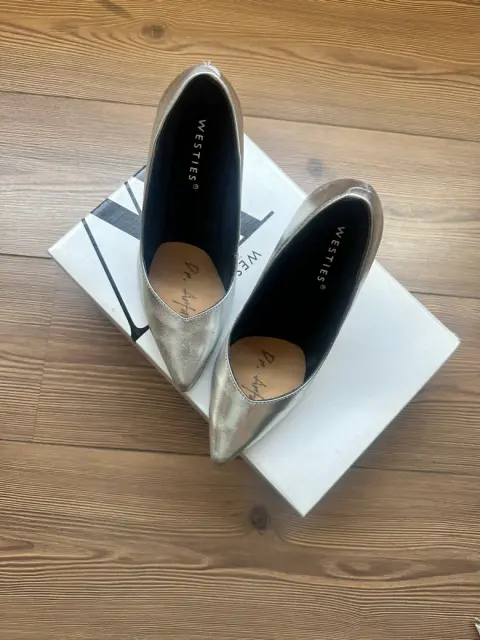 ZAPATILLAS WESTIES. Hermosas zapatillas plateadas tacón de punta