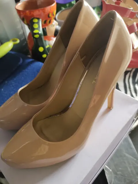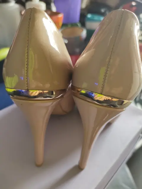 Zapatillas Yaeli. Zapatillas de charol plataforma escondida forro sintético, tacón de aguja y detalle metálico 12 CM