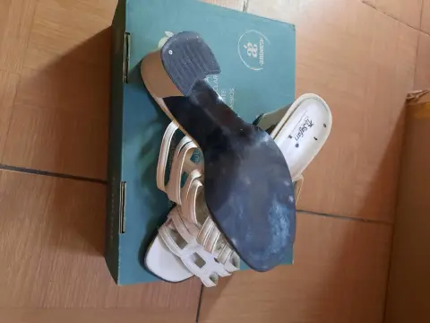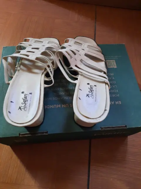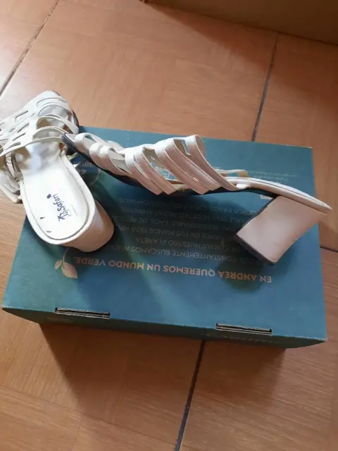 Zapatos blanco en buen estado seminuevo de tacón cuadrado para uso de playa cómodo