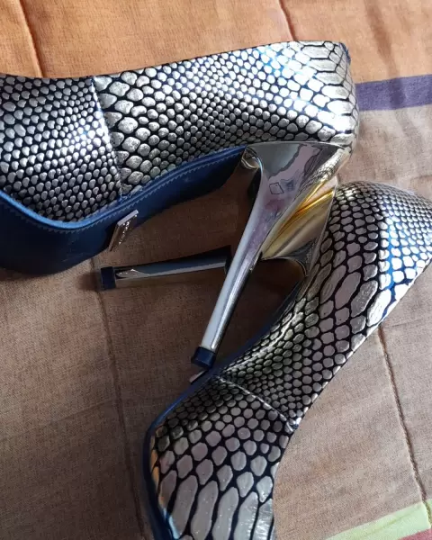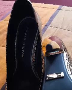 Zapatillas paros hilton doradas con negro ,super lindas, solo se uso por un par de horas.