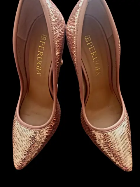 Stilettos de lentejuela en tono oro rosado, hermosos, en talla 5 1/2