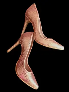 Zapatos. Stilettos de lentejuela en tono oro rosado, hermosos, en talla 5 1/2