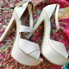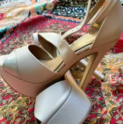 Zapatos abiertos de tacon alto beige. Nuevos y hermosos zapatos color beige de tacón fino que luce más alto por el diseño de plataforma