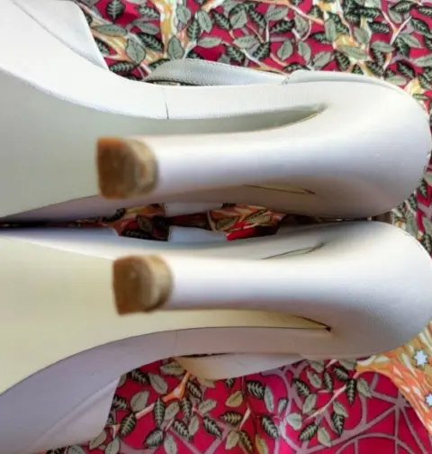 Nuevos y hermosos zapatos color beige de tacón fino que luce más alto por el diseño de plataforma