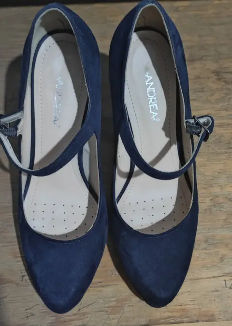 Zapatos azules. Marca Andrea, No 4, de ante azul marino, tacón del 9, cómodos, seminuevos