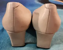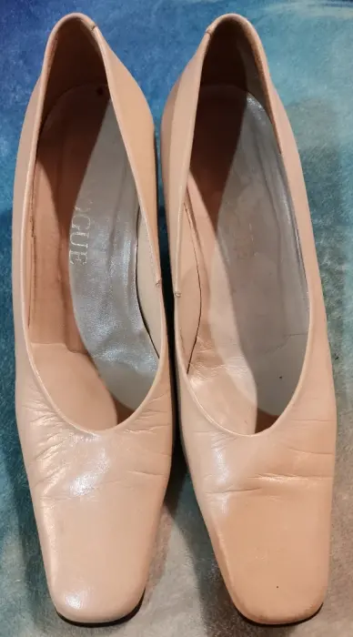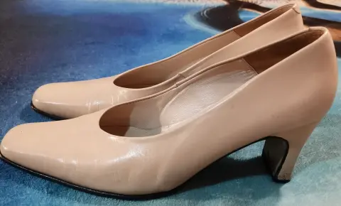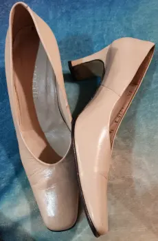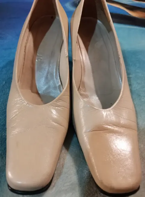 Zapatos beige de tacon. Del No. 2 y medio, comodos, tacon de 6 cm de alto, de piel