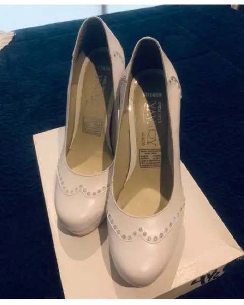 *NUEVOS* y hermosos zapatos de tacón blancos, con incrustaciones en el borde de adelante. Son del 4.5 pero son muy amplios, yo calzo del 5 y me quedan perfectos!!