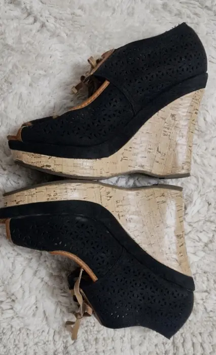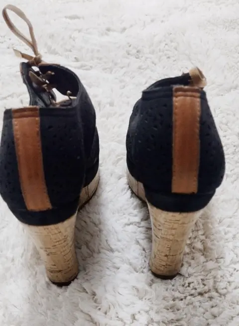Zapatos corte cuña de corcho. En excelente estado,se usaron muy poco, muy cómodos, tienen un ligero desgaste en la punta y un detalle en el pie derecho, última foto, pero es imperceptible.Altura 10cm