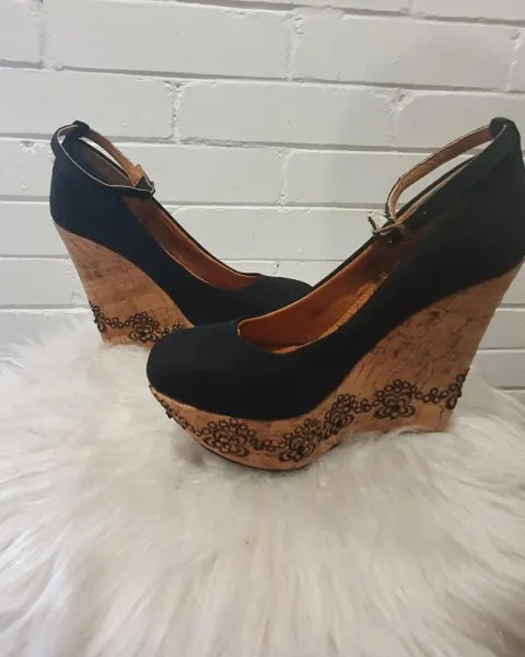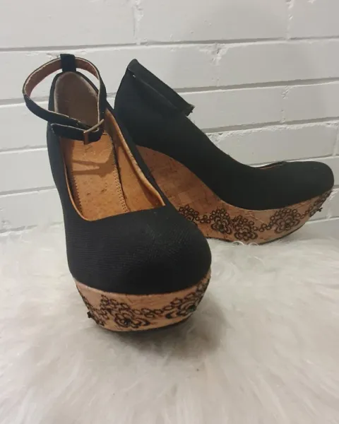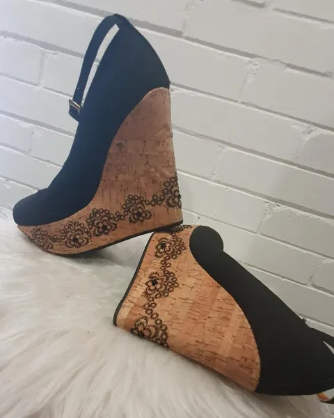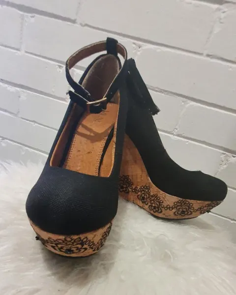 Zapatos de plataforma decorativa. Zapato con tacón plataforma decorativa, el tacón mide 12.5 cm, están en excelentes condiciones