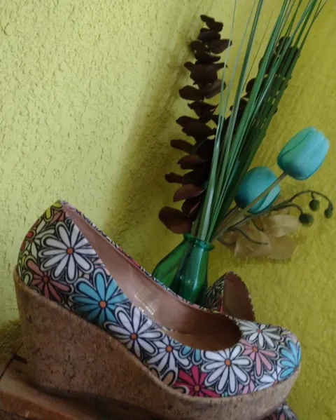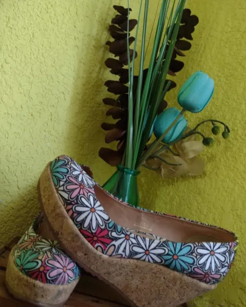 Zapatos de plataforma floreados. Luce más alta sin sacrificar comodidad usando estos Zapatos de plataforma con forro textil de flores multicolores, en excelente estado sin rayaduras ni manchas, por su plataforma no cansan ✨🌷