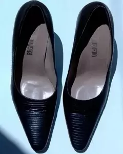 Zapatos de tacón. Zapatillas icónicas, Regina Romero corte a una sola pieza, color negro, tacón 7.5 cm , talla 5.5 No presenta, talladura ni raspones.¡En buen estado!