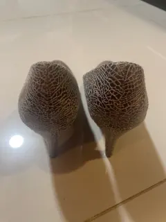Preciosos zapatos de tacón café con dorado de ante una sola puesta